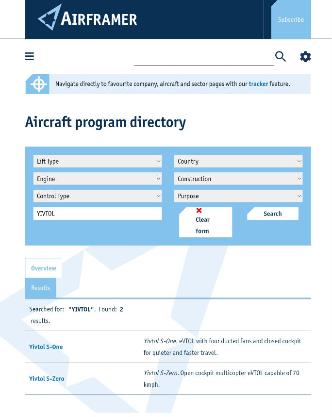 We are proud to announce a significant international milestone for YIVTOL. Our two flagship eVTOL models, the S-ZERO and the S-ONE, have been officially accepted and listed by the globally respected aviation industry database, Airframer.